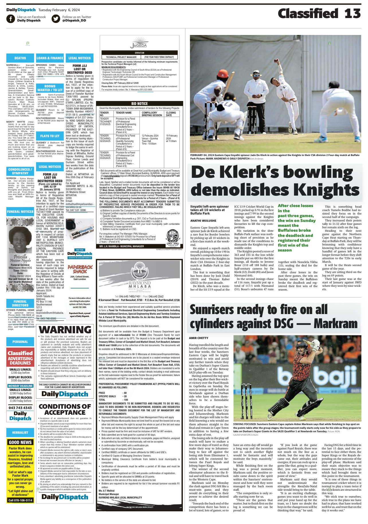 Details Tender Number TECH/MIG 02/2024/25 Department Great Kei Municipality Tender Type Request for Bid(Open-Tender) Province Eastern Cape Date Published 06/02/2024 Closing Date 19/02/2024 11 00 Place where goods, works or services are required null Special Conditions N/A ENQUIRIES Contact Person V. Makeleni Email VMakeleni@greatkeilm.gov.za Telephone number 043-831-5700 FAX Number N/A BRIEFING SESSION Is there a briefing session? Yes Is it compulsory? Yes Briefing Date and Time 12/02/2024 10 00 Briefing Venue Qumrha Town Hall TENDER DOCUMENTS IMG_5030.jpg